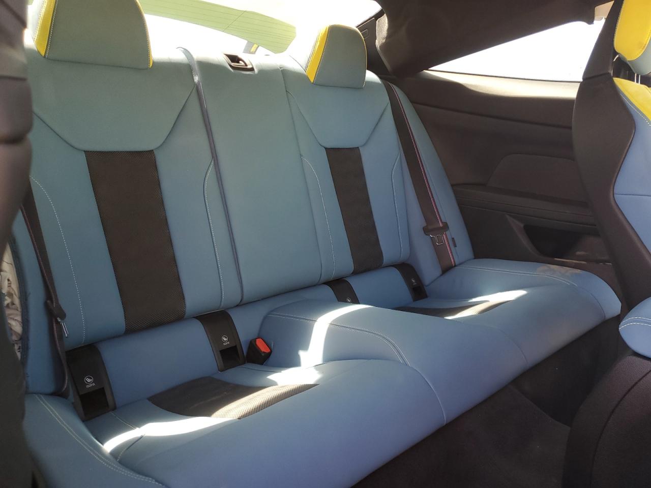 The interior features Merino leather in combinations such as Black, Silverstone, Yas Marina Blue/Black, and Kyalami Orange, with optional carbon bucket seats (extremely supportive and track-ready).