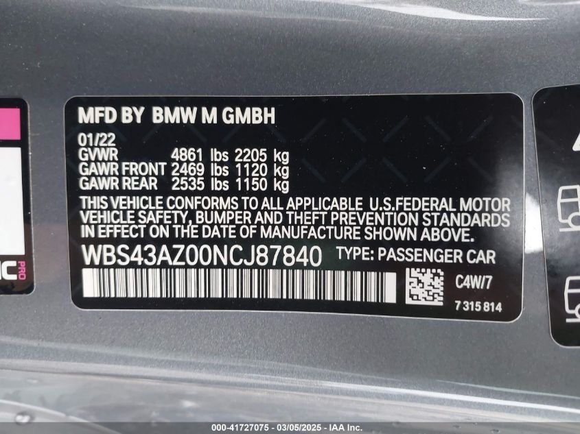 2022 BMW M4 | WBS43AZ00NCJ87840