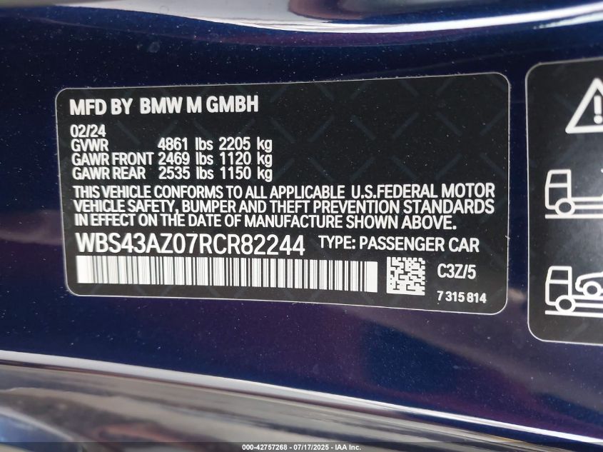 2024 BMW M4 | WBS43AZ07RCR82244
