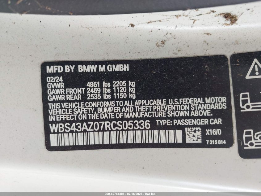 2024 BMW M4 | WBS43AZ07RCS05336