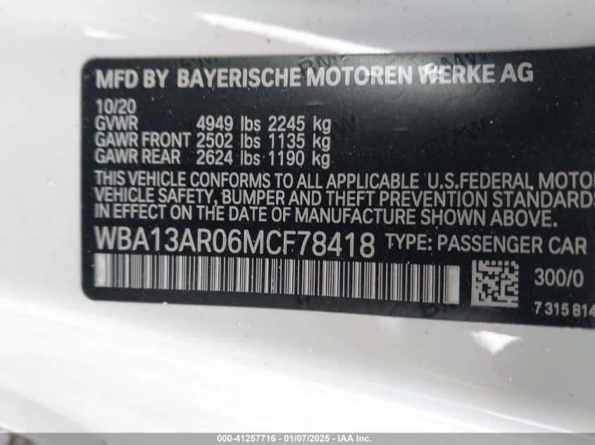 2021 BMW M440I | WBA13AR06MCF78418
