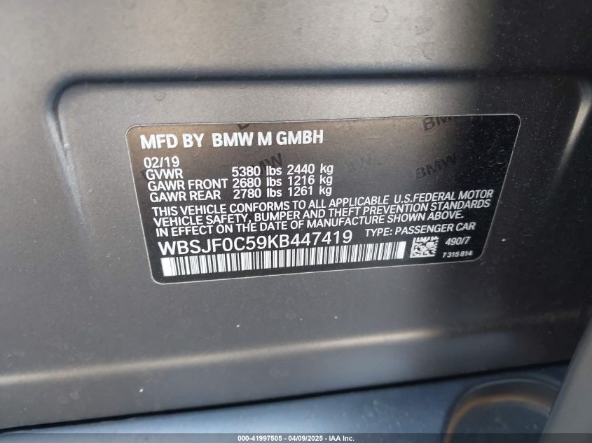 2019 BMW M5 | WBSJF0C59KB447419
