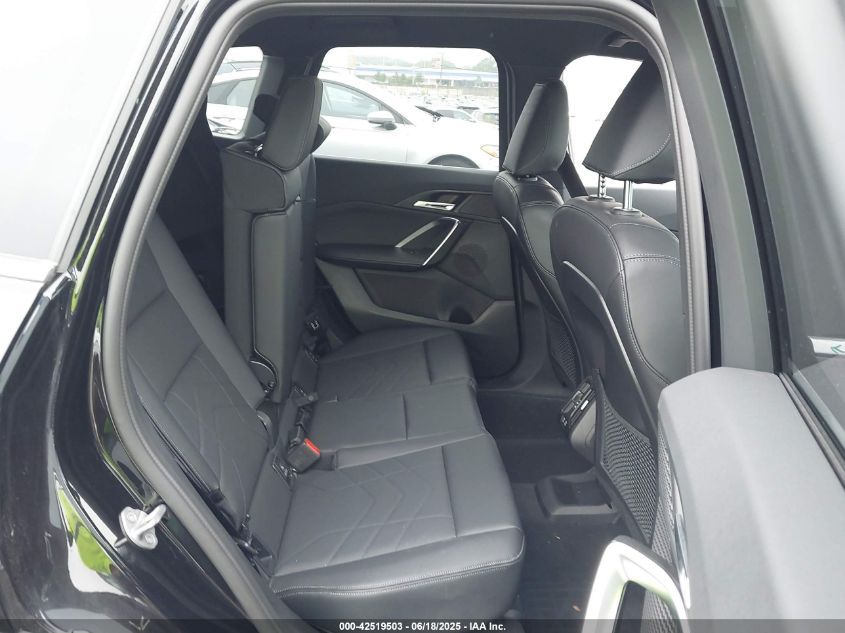 Wheel designs on the 2023+ X1 emphasize geometric precision and proportional balance. Base models are fitted with 18-inch alloy wheels, often with V-spoke or double-spoke patterns in silver or orbit gray finishes. Upgrading to xLine or M Sport trims unlocks 19- or 20-inch wheels, including multi-spoke designs, machined bicolor finishes, or jet black M Performance rims that enhance the SUV’s broader stance and dynamic silhouette. The available staggered-width setups on sport trims enhance grip and curb presence, while wheel arch extensions in body-color or gloss black finish the look with a robust, upscale edge.