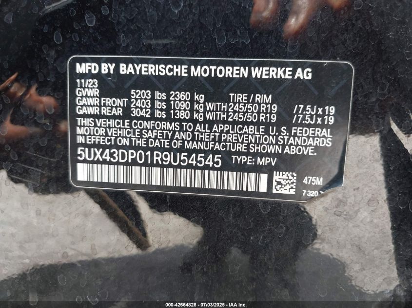 2024 BMW X3 | 5UX43DP01R9U54545