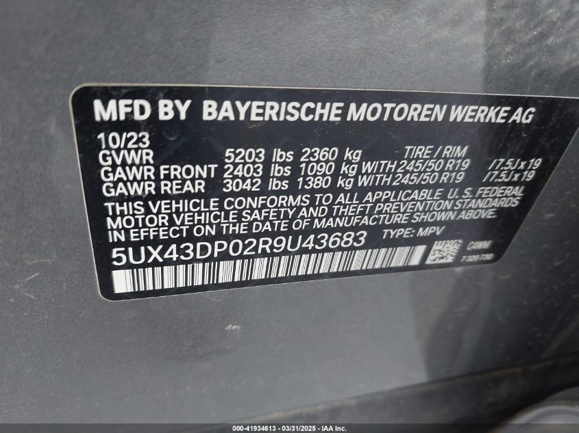 2024 BMW X3 | 5UX43DP02R9U43683
