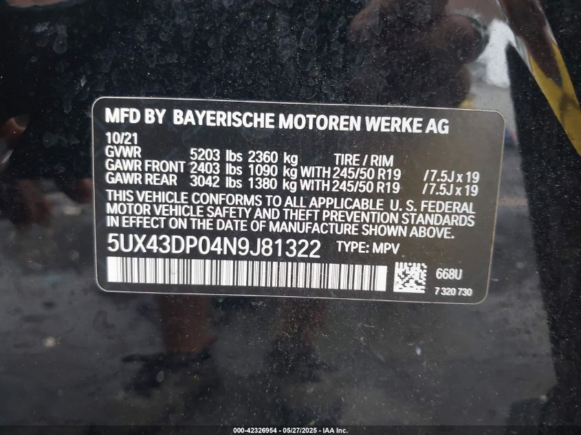 2022 BMW X3 | 5UX43DP04N9J81322