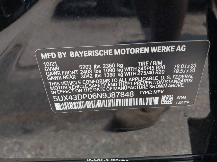 2022 BMW X3 | 5UX43DP06N9J87848