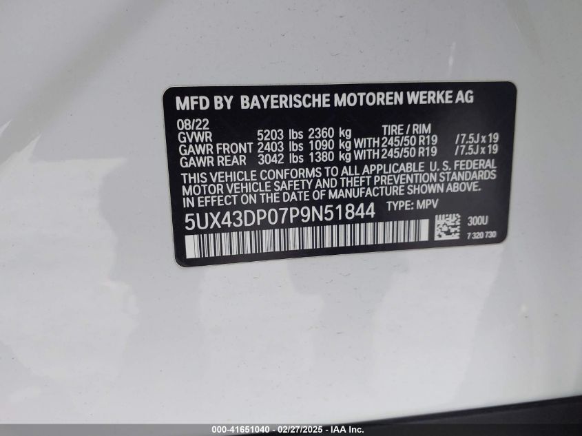 2023 BMW X3 | 5UX43DP07P9N51844