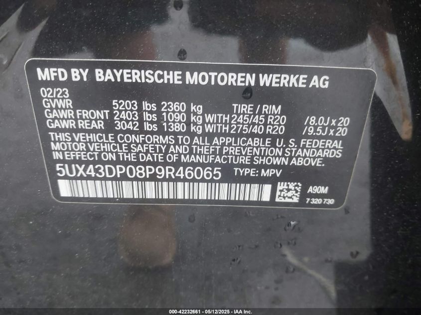 2023 BMW X3 | 5UX43DP08P9R46065