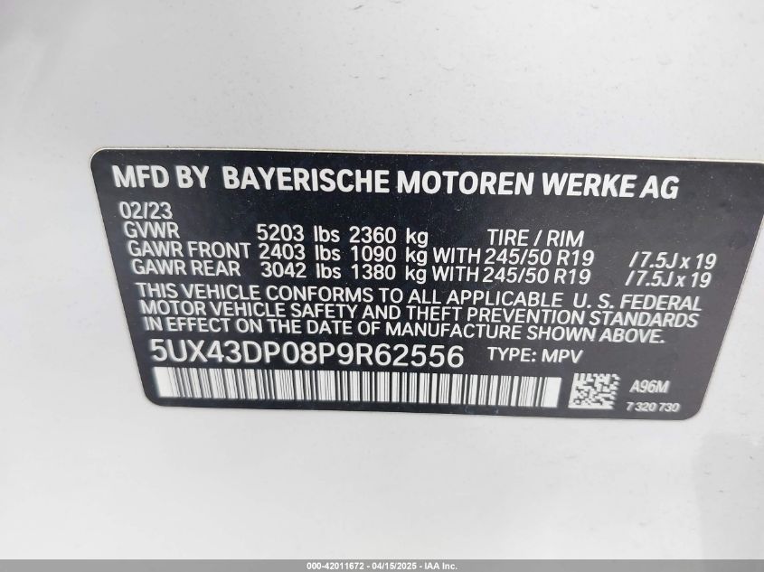 2023 BMW X3 | 5UX43DP08P9R62556