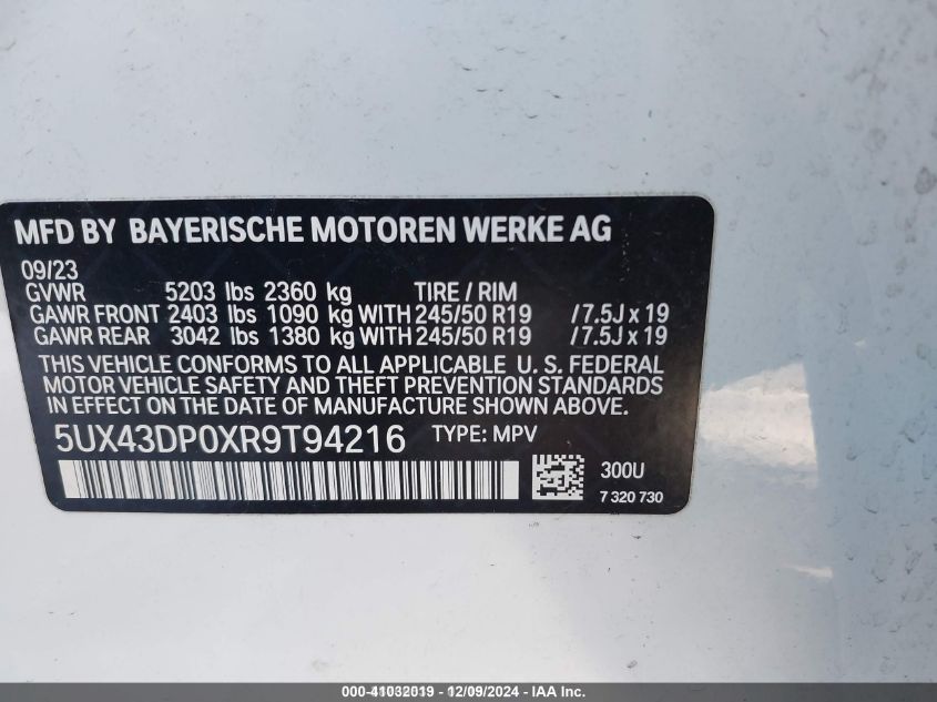 2024 BMW X3 | 5UX43DP0XR9T94216