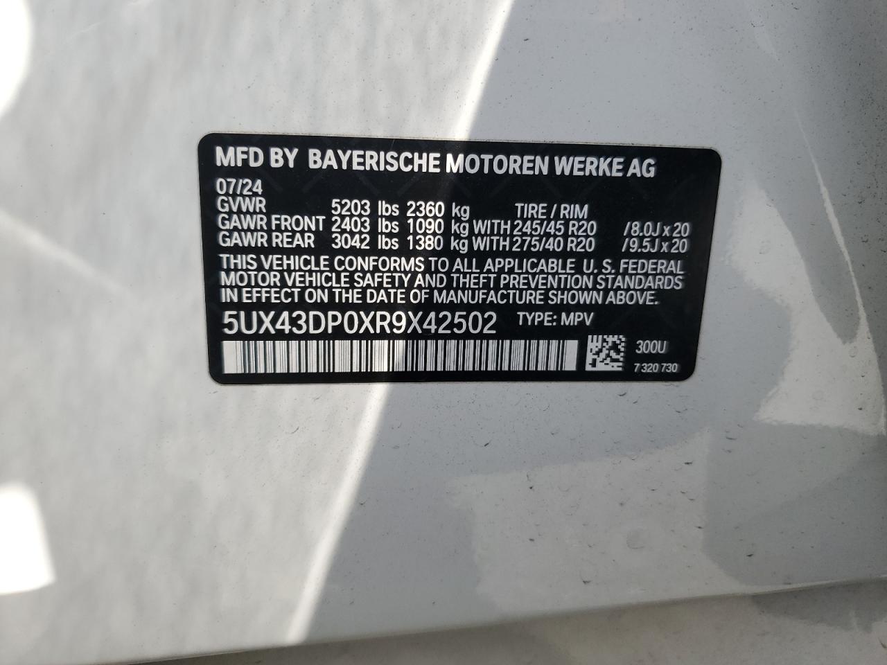 2024 BMW X3 | 5UX43DP0XR9X42502