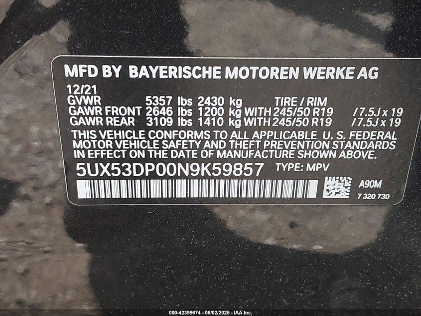 2022 BMW X3 | 5UX53DP00N9K59857