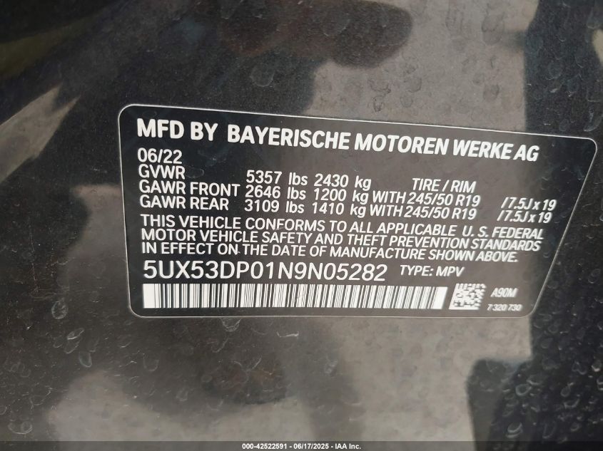 2022 BMW X3 | 5UX53DP01N9N05282