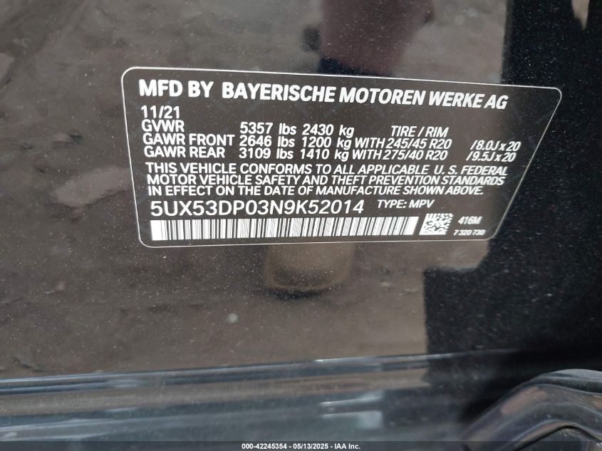 2022 BMW X3 | 5UX53DP03N9K52014