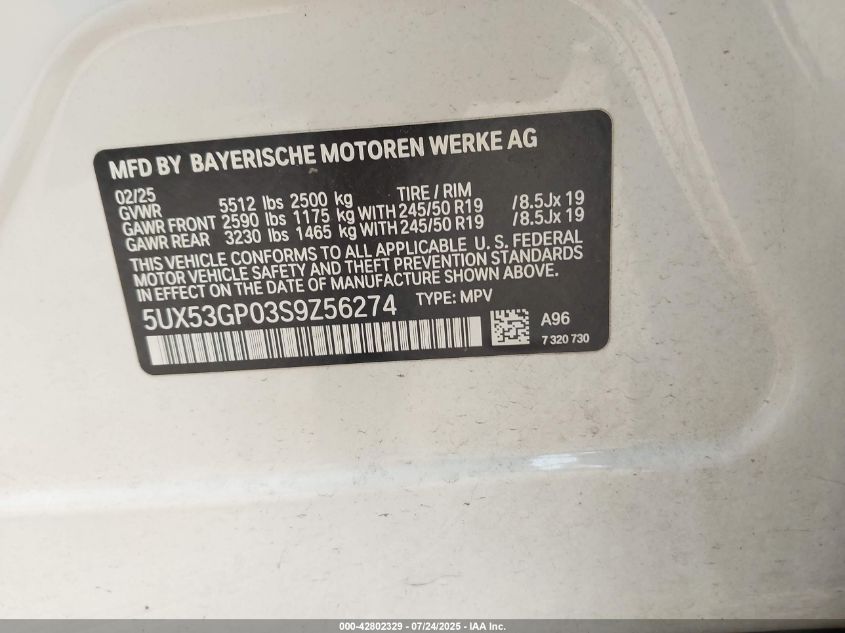 2025 BMW X3 | 5UX53GP03S9Z56274