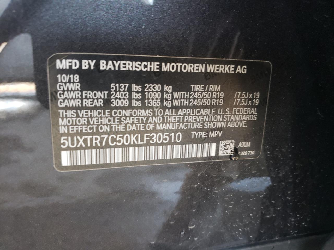 2019 BMW X3 | 5UXTR7C50KLF30510