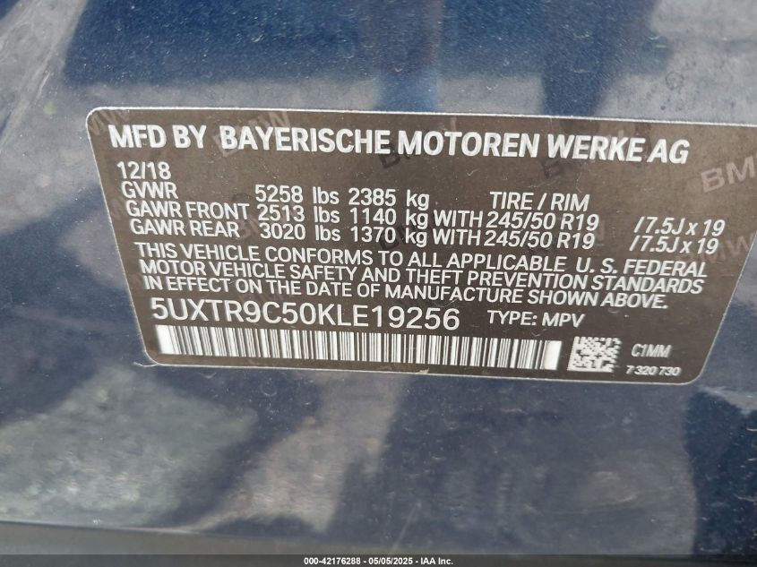 2019 BMW X3 | 5UXTR9C50KLE19256