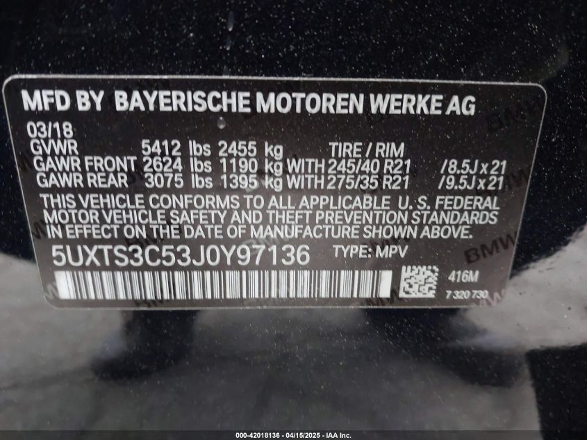 2018 BMW X3 | 5UXTS3C53J0Y97136