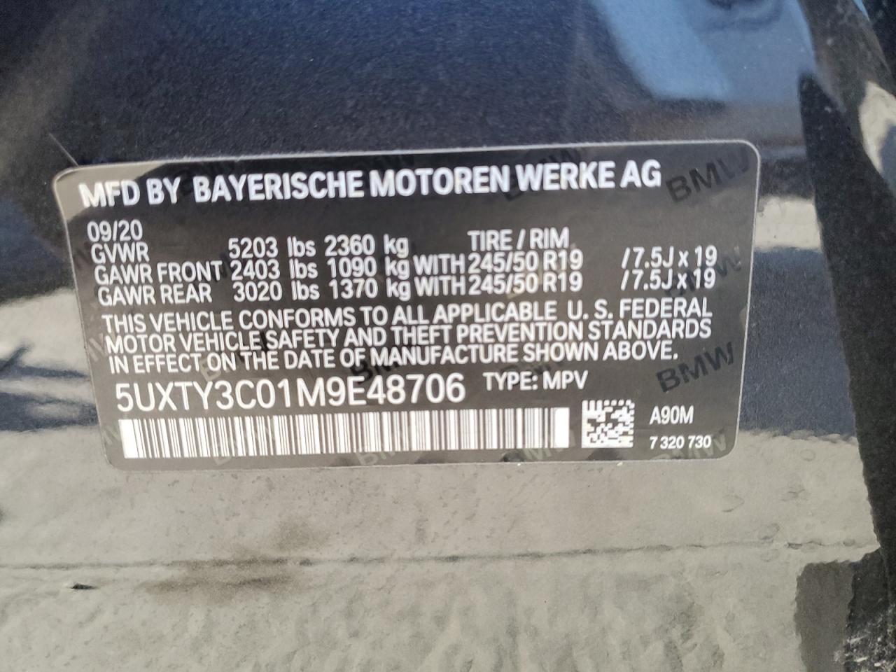 2021 BMW X3 | 5UXTY3C01M9E48706
