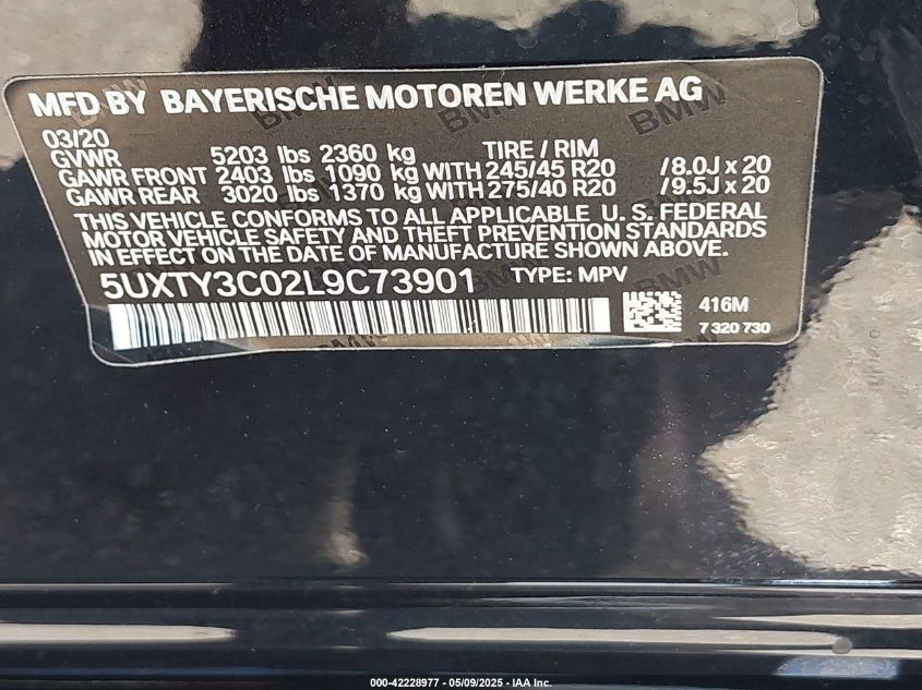 2020 BMW X3 | 5UXTY3C02L9C73901