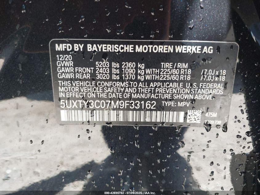 2021 BMW X3 | 5UXTY3C07M9F33162
