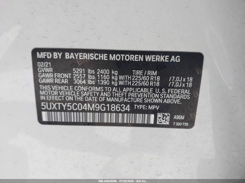 2021 BMW X3 | 5UXTY5C04M9G18634