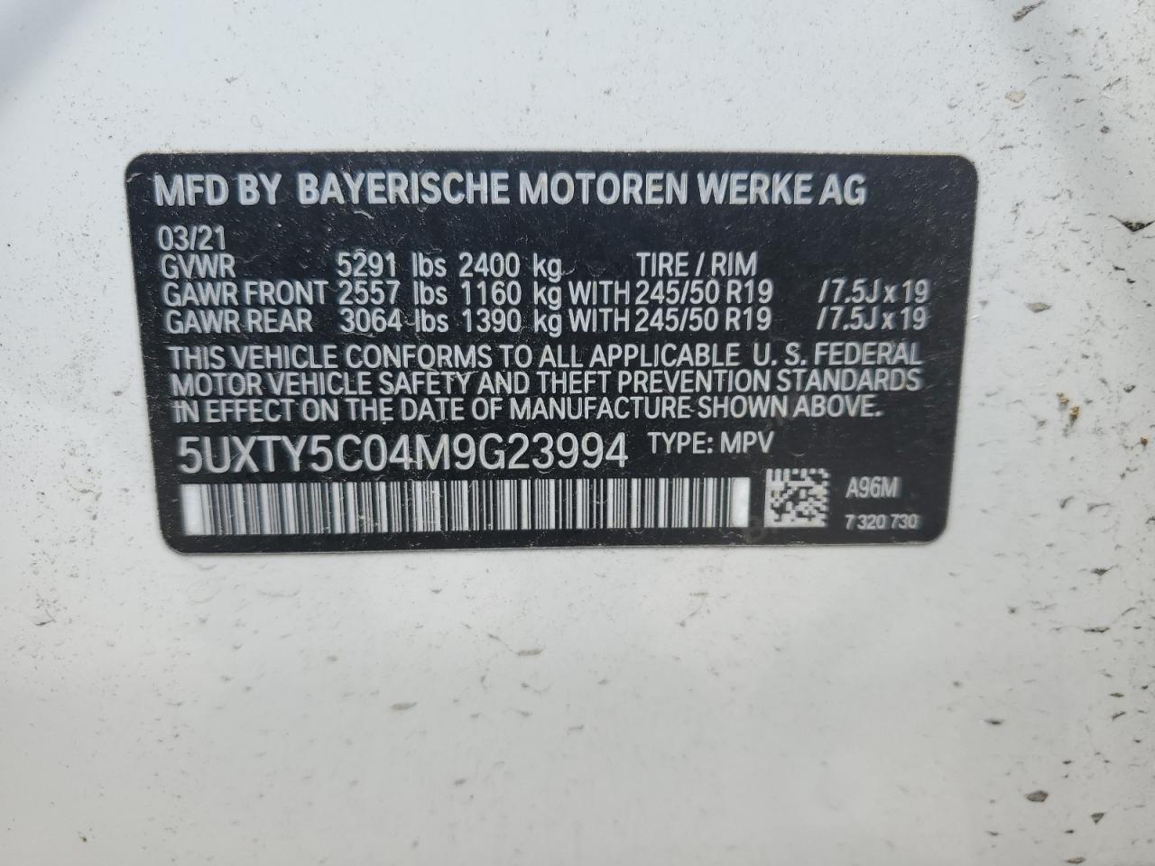 2021 BMW X3 | 5UXTY5C04M9G23994