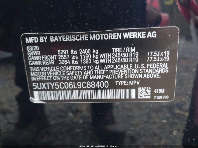 2020 BMW X3 | 5UXTY5C06L9C88400