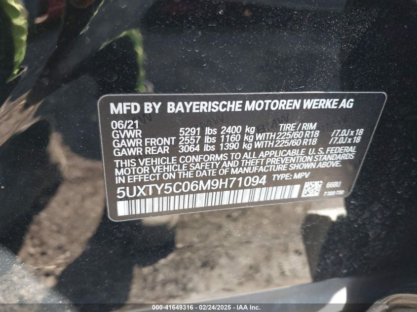 2021 BMW X3 | 5UXTY5C06M9H71094