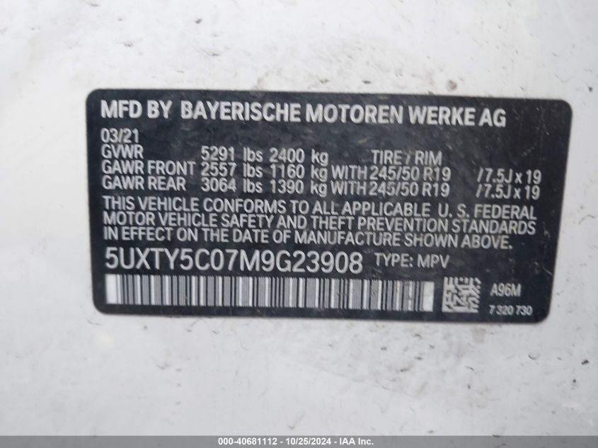 2021 BMW X3 | 5UXTY5C07M9G23908