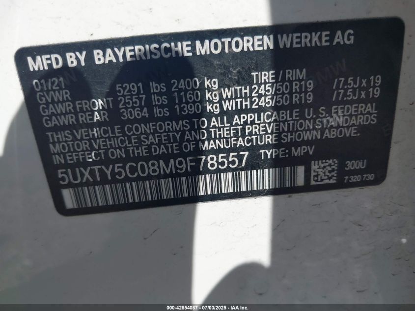 2021 BMW X3 | 5UXTY5C08M9F78557