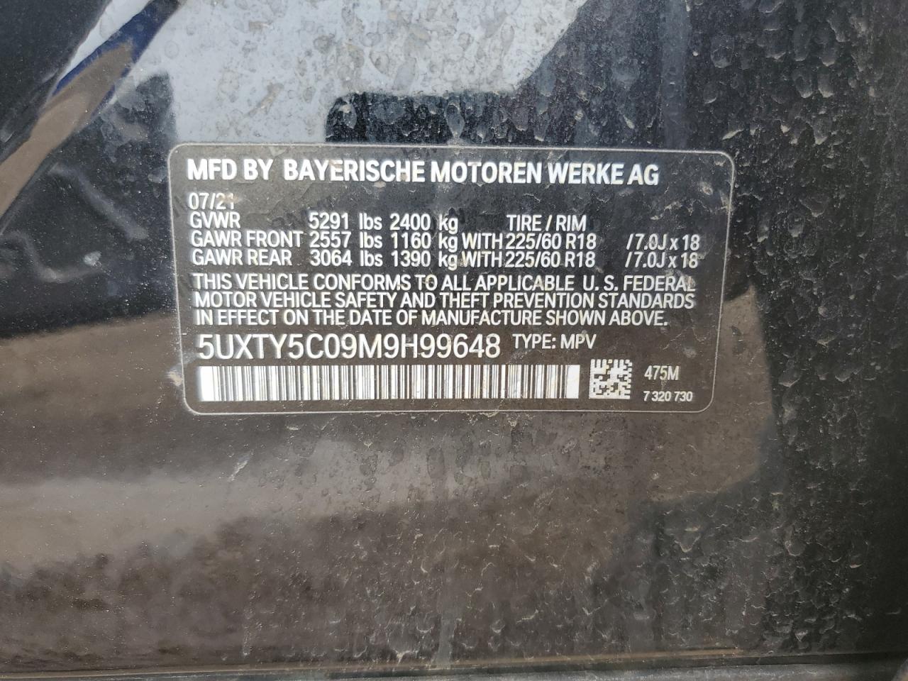 2021 BMW X3 | 5UXTY5C09M9H99648