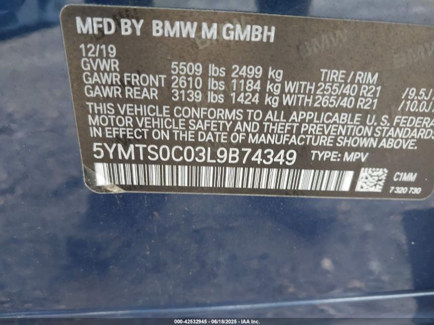 2020 BMW X3 | 5YMTS0C03L9B74349