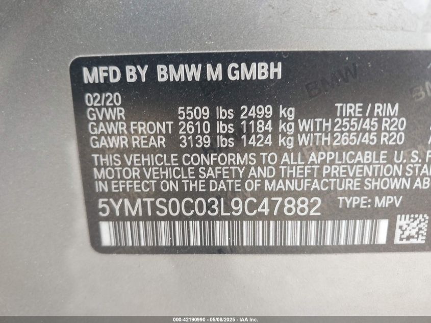 2020 BMW X3 | 5YMTS0C03L9C47882