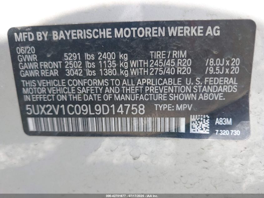 2020 BMW X4 | 5UX2V1C09L9D14758