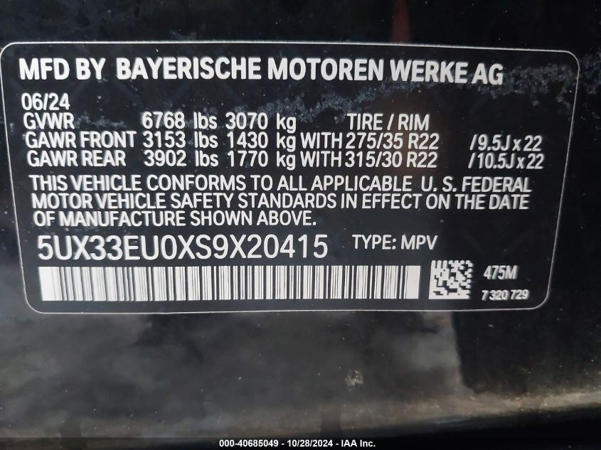 2025 BMW X5 | 5UX33EU0XS9X20415