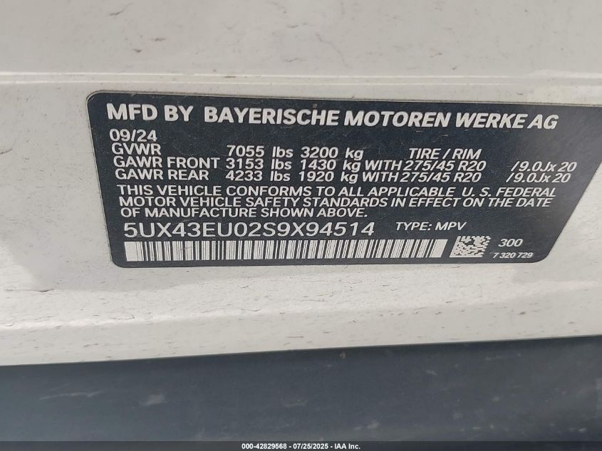 2025 BMW X5 | 5UX43EU02S9X94514
