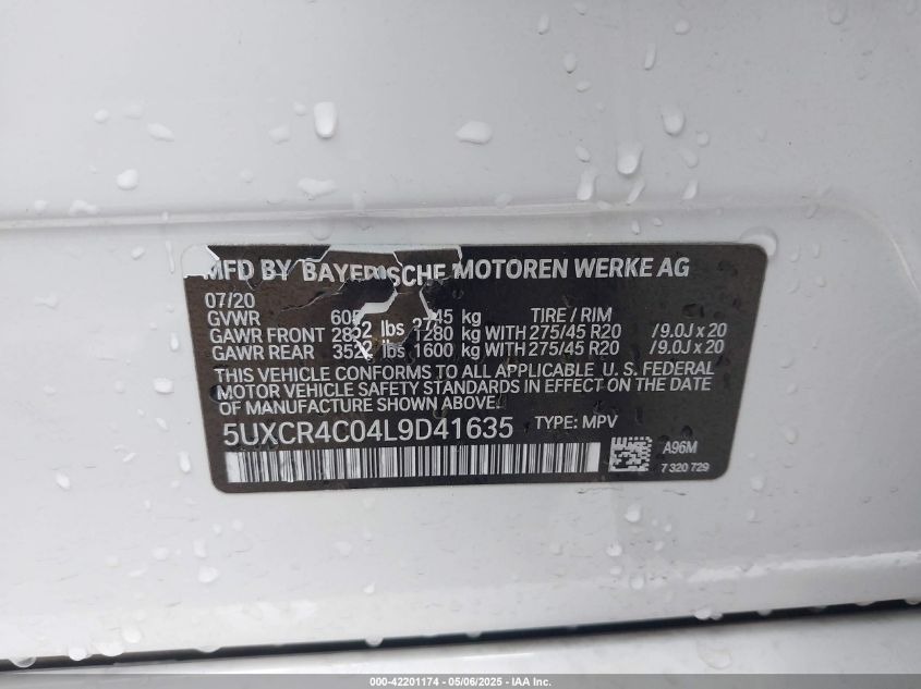 2020 BMW X5 | 5UXCR4C04L9D41635