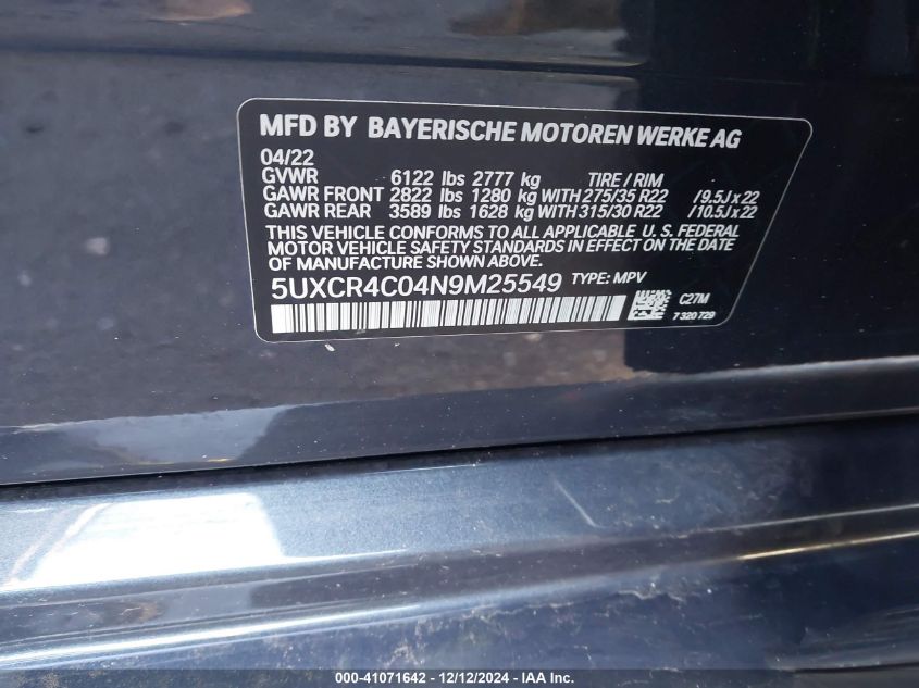 2022 BMW X5 | 5UXCR4C04N9M25549