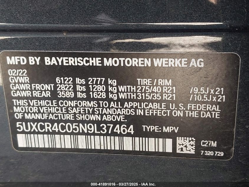 2022 BMW X5 | 5UXCR4C05N9L37464