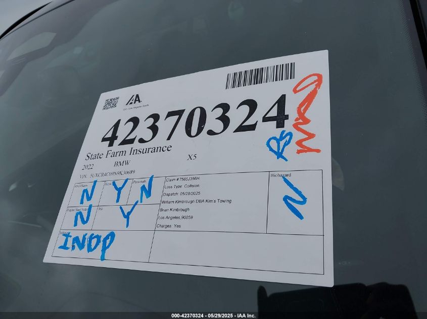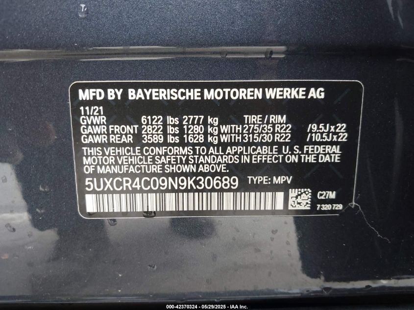 2022 BMW X5 | 5UXCR4C09N9K30689