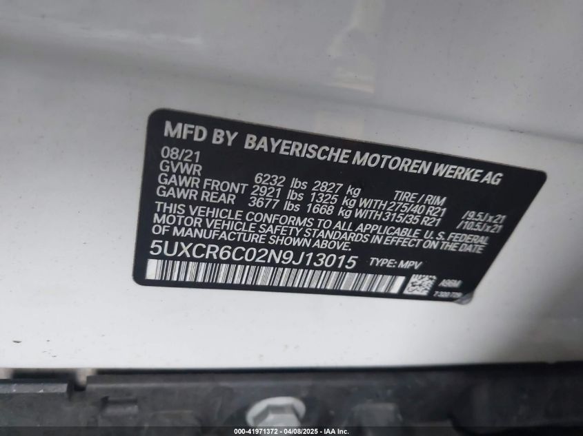 2022 BMW X5 | 5UXCR6C02N9J13015