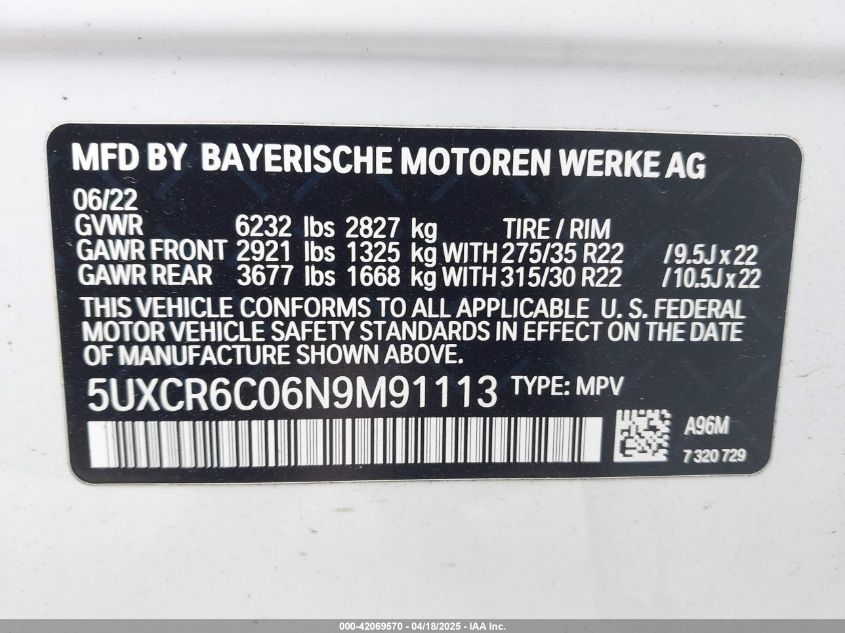 2022 BMW X5 | 5UXCR6C06N9M91113