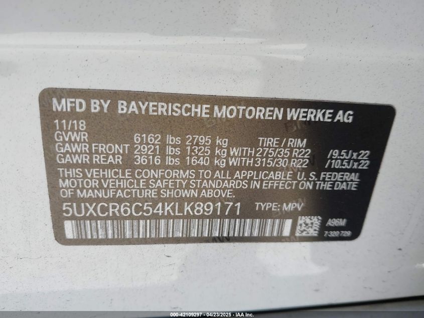 2019 BMW X5 | 5UXCR6C54KLK89171