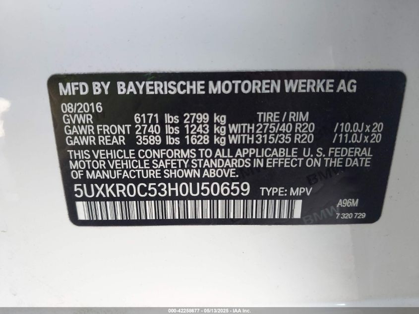 2017 BMW X5 | 5UXKR0C53H0U50659
