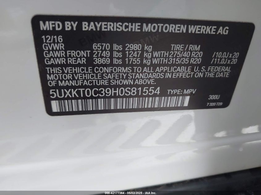 2017 BMW X5 | 5UXKT0C39H0S81554
