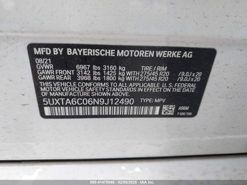 2022 BMW X5 | 5UXTA6C06N9J12490