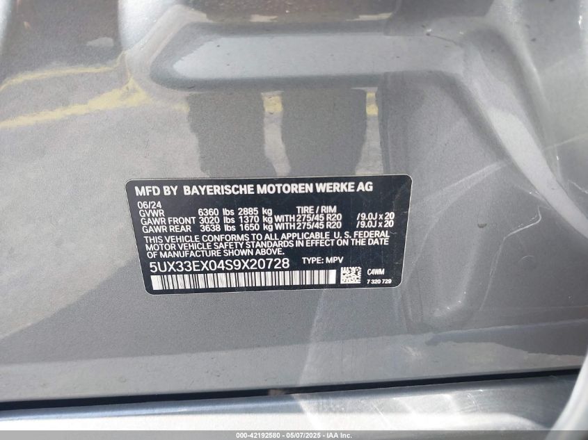 2025 BMW X6 | 5UX33EX04S9X20728
