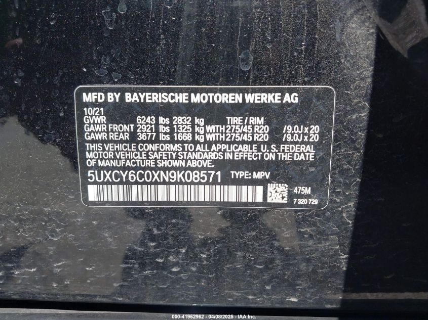 2022 BMW X6 | 5UXCY6C0XN9K08571